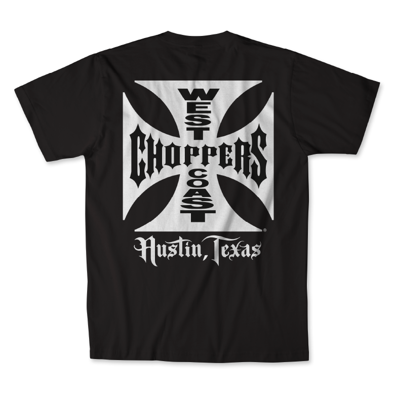 SOLID BLACK TEE MADE OUT OF 100% COTTON, FEATURING THE OG WEST COAST CHOPPERS ATX LOGO IN SILK SCREEN PRINT.COMFORTABLE T-SHIRT PERFECT FOR EVERY CASUAL OCCASION.